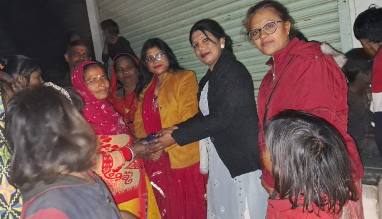 कच्ची बस्ती में जाकर दान पुण्य का कार्य किया बच्चों को महिलाओं को पहने के लिए कपड़े ,चप्पले वितरित की गई और साथ ही खाने-पीने का सामान वितरित किया गया डायरेक्टर अर्चना सक्सेना