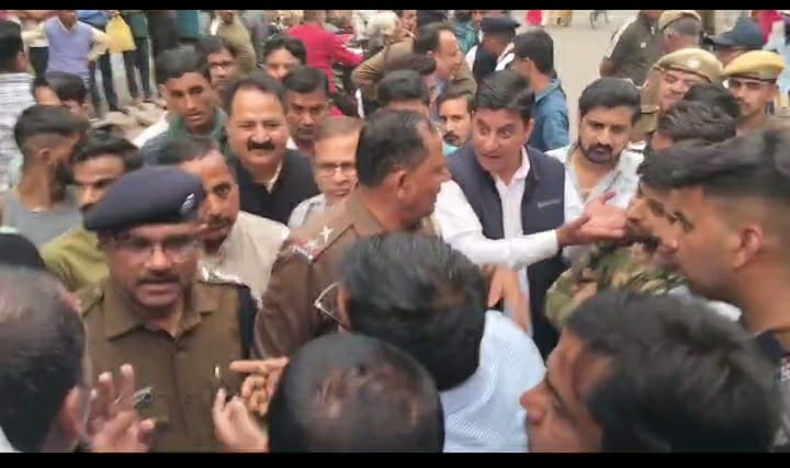 टैक्सी वालों की मनमानी से परेशान जोशीवाड़ा के लोगों ने दाऊजी रोड़ पर लगाया जाम