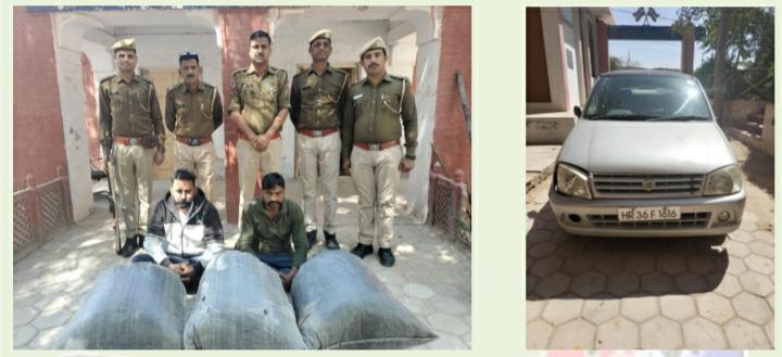 आईरा समाचार बीकानेर। बीकानेर जिले की गजनेर थाना पुलिस ने सोमवार को मादक पदार्थों के खिलाफ कार्रवाई करते हुए दो तस्करों से अवैध मादक पदार्थ 51.500किलोग्राम अवैध डोडा पोस्त सहित कार जब्त की है।गजनेर थाना अधिकारी राकेश स्वामी ने जानकारी देते हुए बताया कि मुखबिर की सूचना पर गजनेर थाना मार्ग पर नाकाबंदी कर बाप फलोदी की तरफ से आ रही कार को चैक किया गया तो कार में ड्राईवर सहित दो व्यक्ति सवार थे जिनके पास तीन काले रंग के कट्टे मिले जिनमें कुल 51.500किलो ग्राम अवैध डोडा पोस्त पाया गया। जिस पर कार नम्बर एच आर 36 एफ1616को जब्त किया गया। इस प्रकरण में दोनों अभियुक्त ओमप्रकाश पुत्र ताराचंद मेघवाल आयु 29 वर्ष निवासी चक 2के.डी. रावला मंडी, जिला अनूपगढ़ व दूसरा सुरेन्द्र सिंह पुत्र तरसेम सिंह जाट सिख आयु 36वर्ष चक 8केपी.डी मंडी रावला जिला अनूपगढ़ गिरफ्तार किया। जिनके खिलाफ एनडीपीएस एक्ट में मुकद्दमा दर्ज कर अनुसंधान की कार्रवाई शुरू की।