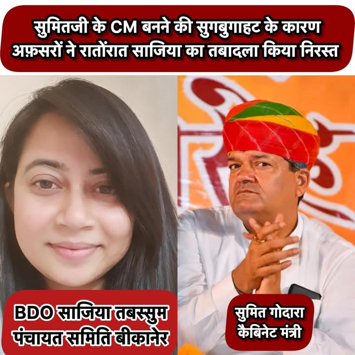 आईरा समाचार बीकानेर पंचायत समिति की विकास अधिकारी साजिया तबस्सुम वैसे तो सदा ही विवादित अधिकारी रही हैं लेकिन हाल ही में राजेरां में की गई बुल्डोजर कार्यवाही के बाद वह खासी चर्चा में है। राजेरा के पट्टेशुदा मकानों दिवारों व शौचालयों को ग़ैरक़ानूनी व अवैध तरीके से तोड़ने व मनमानी करने के अंदेशे से ग्रामीणों ने केंद्रीय मंत्री अर्जुनराम मेघवाल एवं स्थानीय विधायक मंत्री सुमित गोदारा को हालांकि पहले ही अवगत करवा दिया था लेकिन फिर भी सैकड़ों निर्माण ध्वस्त हो ही गए।बिना किसी वैध कारवाही के हुई इस मनमानी की शिकायत जिला प्रशासन, जन प्रतिनिधियों से होते हुए यह भाजपा संगठन और सरकार तक जा पहुंची। जानकारी में यह भी आया है कि संघ कार्यालय बीकानेर से जयपुर तक भी यह मुद्दा ध्यान में आ चुका था। सड़क की आड़ में बड़े पैमाने पर हुई आर्थिक मानसिक क्षति को विद्वेषपूर्ण कारवाही बताते हुए ग्रामीणों ने जगह जगह दुखड़ा रोया और इसी का परिणाम रहा कि पार्टी संगठन के डेढ़ दर्जन पदाधिकारियों सहित जिले के तीन विधायकों ने भी साजिया को हटाने की शिकायत उचित स्तर तक की है। सरकार के पंचायत राज मंत्री मदन दिलावर ने इस सबके मध्यनजर विकास अधिकारी साजिया तबस्सुम का तबादला धौलपुर कर भी दिया था लेकिन बड़े दबाव के चलते किया गया तबादला रातों रात खारिज तक करवा लिया गया।जानकारी अनुसार केबिनेट मंत्री सुमित गोदारा को यह सब रास नहीं आया ओर अपनी ताकत का इस्तेमाल, साजिया तबस्सुम बीकानेर रखकर दिखाया है। यहां यह भी उल्लेखनीय है कि जिस पंचायत समिति का यह मामला है उसके क्षेत्राधिकार में जिले के दो अन्य विधायकों का भी आधे से ज्यादा क्षेत्र शामिल है लेकिन उनकी कोई सुनवाई नहीं हुई। केबिनेट मंत्री खेमे ने सोशल मीडिया पर भी अपनी ताकत को जाहिर करते हुए जश्न तक भी मनाया है। कुछ अति उत्साही कार्यकर्ताओं ने साजिया तबस्सुम के रद्द हुए तबादले को फिर से ताजपोशी के पोस्ट कमेंट कर कटाक्ष तक किया है। सब पर भारी पड़े मंत्री की इस ताकत के बाद केबिनेट मंत्री को उप मुख्यमंत्री बनने तक के कयास लगने लगे है। पार्टी में सनातन संस्कृति के पैरोकारों को यह सब नागवार गुजरा तो सोशल मीडिया की पोस्टों व कमेंटस के स्क्रीन शॉट आलाकमान तक पहुंचाये है । इधर मंत्री खेमे में उत्साह है उधर विधायक संगठन व संघ खफा है । इसी मुद्दे के चलते संगठन में मण्डल अध्यक्ष चुनाव में गड़बड़ी व ज़िलाध्यक्ष चुनाव को लेकर राजनीति उफान पर है। कल ही पार्टी के कद्दावर नेता एवं पूर्व मंत्री देवीसिंह भाटी ने भी अपना आक्रोश जताया है।