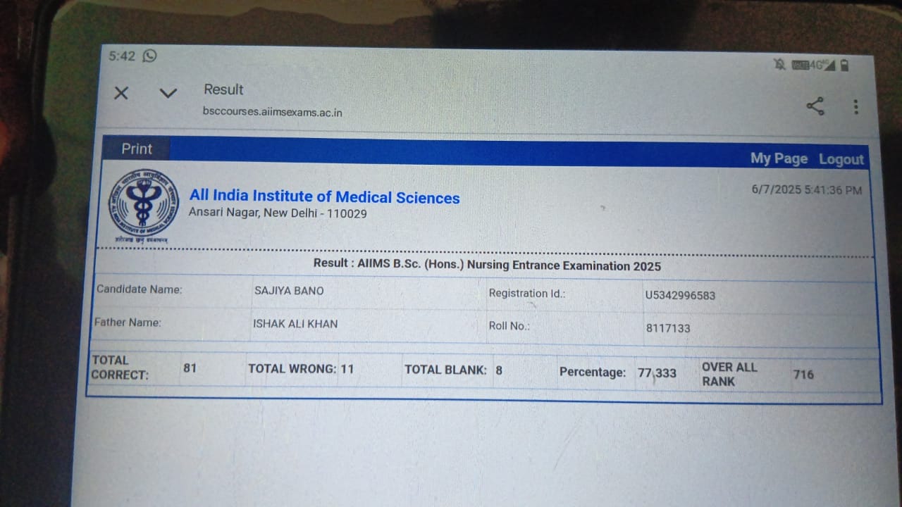 सेहला गांव की साजिया खान ने AIIMS नर्सिंग एग्जाम में पाई 716वीं रैंक, समाज को गर्व!