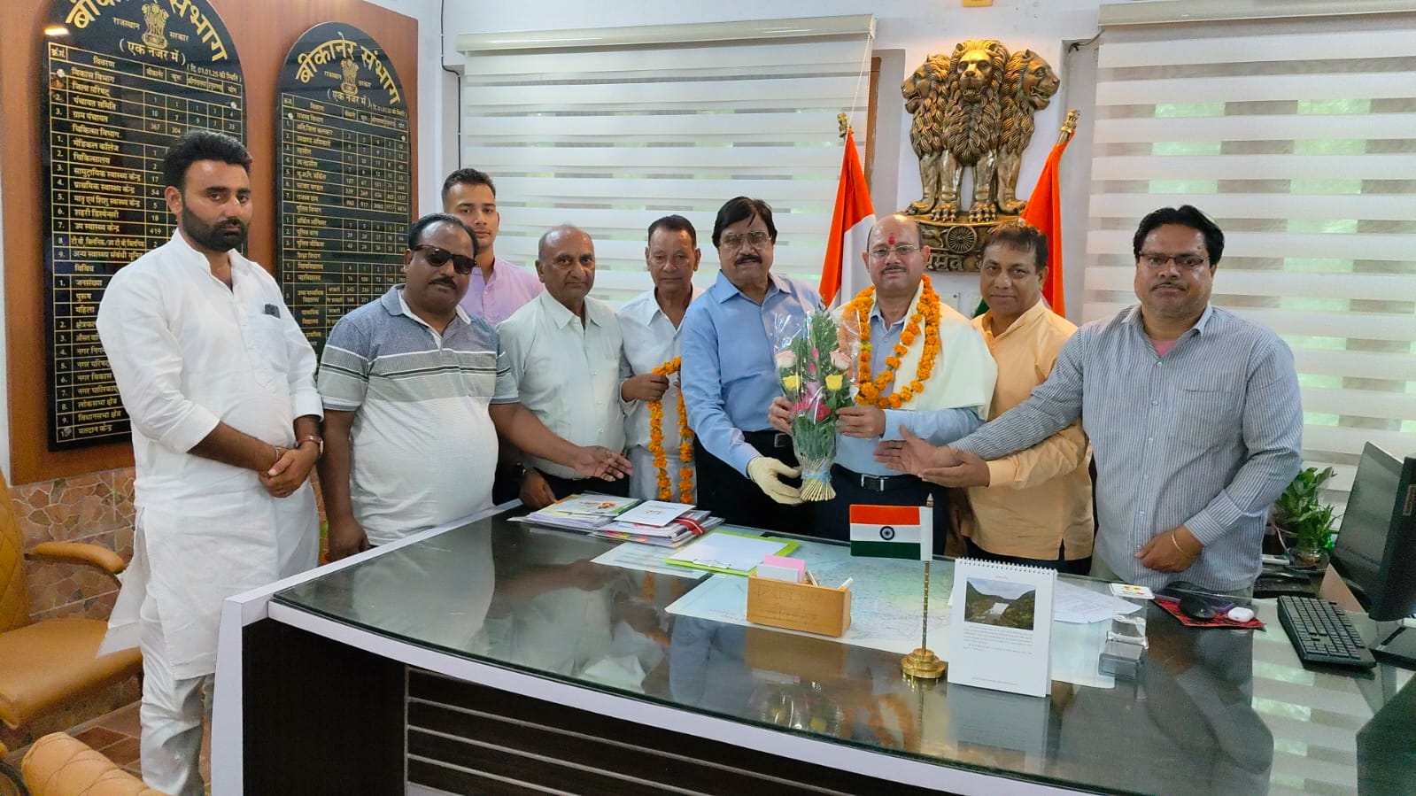 आईरा समाचार बीकानेर बीकानेर। संभागीय आयुक्त विश्राम मीणा के पदभार ग्रहण करने के बाद मंगलवार को मित्र एकता सेवा समिति, बीकानेर द्वारा उनका सम्मान किया गया। समिति के संरक्षक सुनील दत्त नागल ने बताया कि संभागीय आयुक्त विश्राम मीणा का तबादला हाल ही में बीकानेर में किया गया है। इस अवसर पर समिति के इं. कमलकांत सोनी, एनडी कादरी, सैय्यद अख्तर,रामकिशोर यादव, विजय शंकर गहलोत, शाकिर हुसैन चौपदार, मौहम्मद साहिल कादरी, जयदीप सिंह द्वारा फ़ूल माला, गुलदस्ता एवं शॉल ओढ़ाकर उनका सम्मान किया और साथ ही बीकानेर के विकास कार्यों और बीकानेर रेलवे फाटक सहित मुद्दों पर चर्चा की गई।