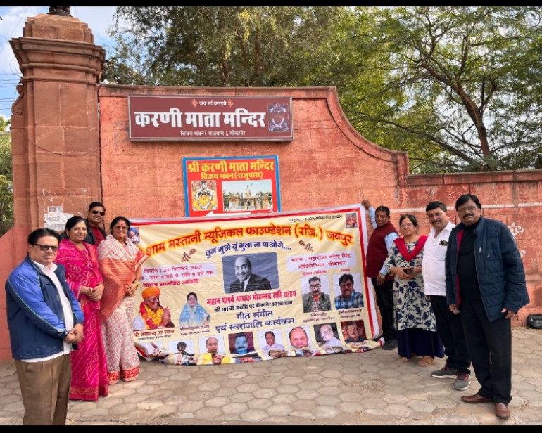 आईरा समाचार बीकानेर। ये शाम मस्तानी म्यूजिकल फाउण्डेशन रजि.जयपुर बीकानेर की शाखा द्वारा पार्श्वगायक स्वर्गीय मोहम्मद रफी की 101 वीं जयंती पर 24 दिसंबर 2025 बुधवार की शाम को बीकानेर के स्थानीय महाराजा नरेंद्र सिंह ऑडोटोरियम हॉल में “तुम मुझे यूं भुला ना पाओगे”….स्वारजंलि गीत संगीत कार्यक्रम आयोजित किया जा रहा है, जिसके कार्यक्रम मंच बैनर का विमोचन रविवार को बीकानेर पश्चिम विधानसभा क्षेत्र के विधायक श्री जेठानंद व्यास ने अपने विधायक जनसुनवाई कार्यालय परिसर में किया।