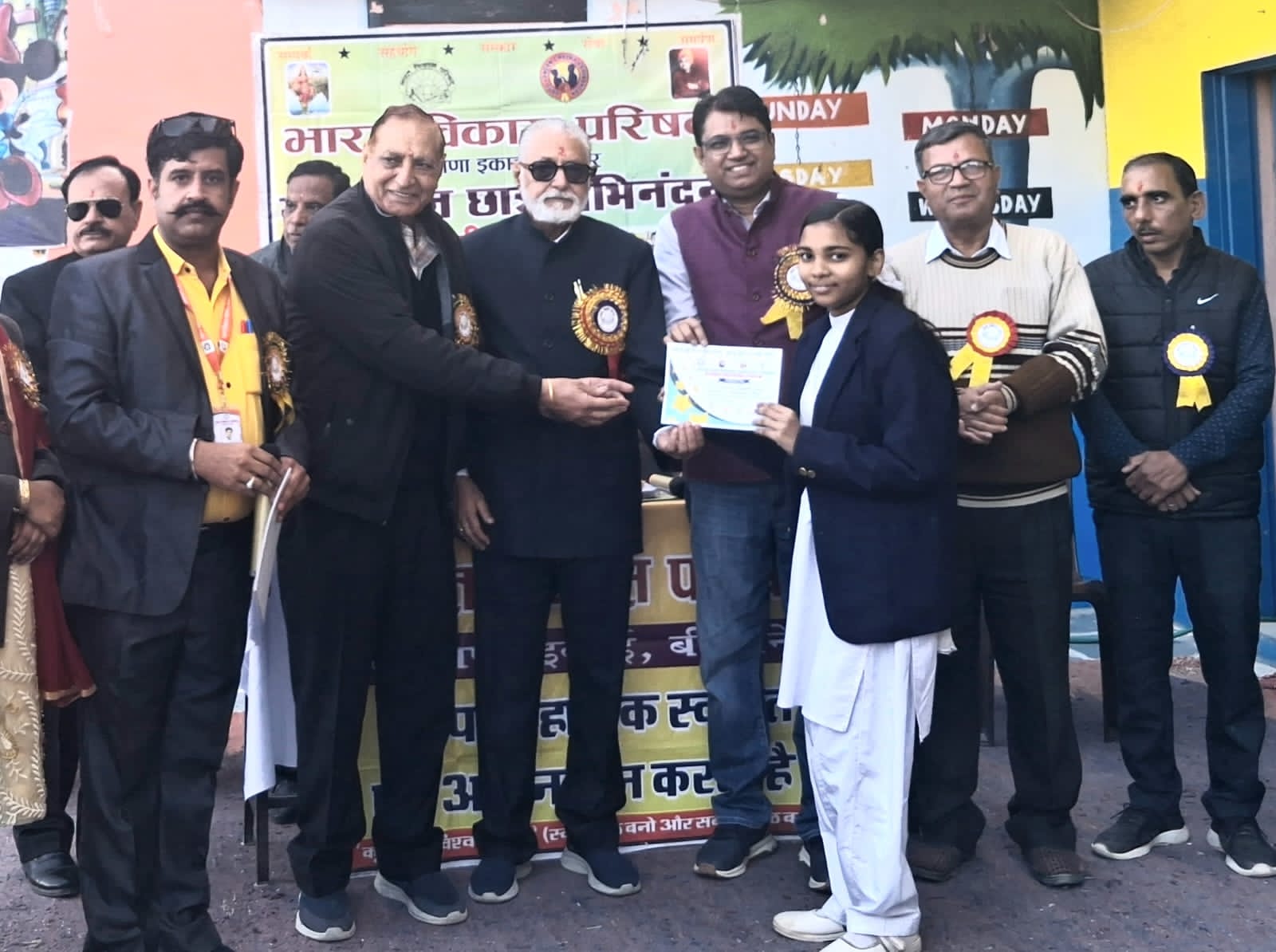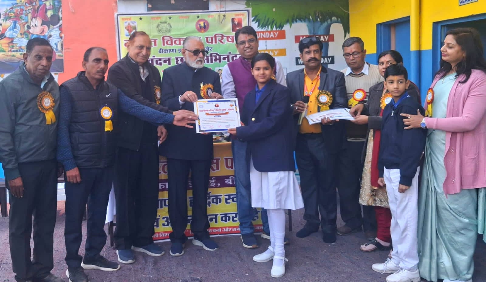 विशिष्ट अतिथि अजय पुरोहित एवं संपर्क संयोजक लीला कृष्ण चावला ने भारत विकास परिषद की संक्षिप्त जानकारी दी।डॉ संजोग बिडवालकर और कौशलेश गोस्वामी ने विद्यार्थियों को संस्कार युक्त जीवन के महत्व के बारे में बताया।