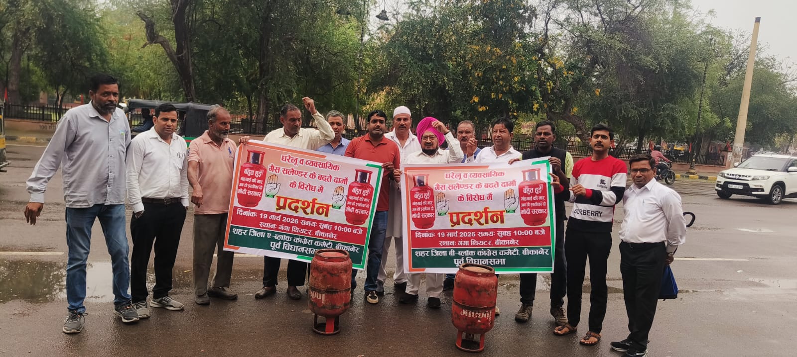 आज दिनांक 19 मार्च को शहर जिला कांग्रेस कमेटी के बीकानेर पूर्व विधानसभा क्षेत्र के A ब्लॉक के अध्यक्ष शहजाद खान भुट्टा और B ब्लॉक के अध्यक्ष आनंद सिंह सोढा के नेतृत्व में गैस सिलेंडर के बढ़ते दामों और महंगाई के खिलाफ गंगा थियेटर स्थित कलेक्ट्रेट के सामने जोरदार प्रदर्शन किया गया। इस मौके पर ब्लॉक अध्यक्ष शहजाद खान भुट्टा ने कहा कि गैस सिलेंडरों की कीमतों को लेकर पूरे देश में हाहाकार मचा हुआ है, लेकिन देश के प्रधानमंत्री इसे सामान्य बता रहे हैं, जबकि हकीकत इसके बिल्कुल उलट है। उन्होंने कहा कि देशभर में डीलरों के पास लंबी-लंबी कतारें लगी हुई हैं और आमजन परेशान है।संगठन महासचिव जोगेंद्र जोईया ने कहा कि बारिश के बावजूद कांग्रेस कार्यकर्ता पीछे नहीं हटे और के नेतृत्व में “बब्बर शेर” की तरह डटे रहे। गंगा थियेटर के सामने जोरदार विरोध प्रदर्शन कर केंद्र सरकार की नीतियों के खिलाफ आक्रोश जताया गया।शहर जिला कांग्रेस के मंडल अध्यक्ष अब्दुल रहमान लोदरा और मोहम्मद आरिफ ने बताया कि शहर और ग्रामीण क्षेत्रों में गैस सिलेंडर को लेकर आमजन सड़कों पर उतर आया है। उन्होंने कहा कि महंगाई और गैस संकट के कारण बड़ी-बड़ी फैक्ट्रियां बंद हो चुकी हैं और छोटे एवं मध्यम व्यापारियों का काम ठप हो गया है।कांग्रेस नेताओं ने आरोप लगाया कि एलपीजी गैस की कमी और महंगाई के चलते ऑटो चालकों सहित कई वर्ग बेरोजगारी की मार झेल रहे हैं। लोगों को घंटों लंबी कतारों में खड़ा रहना पड़ रहा है।देश में लगातार बढ़ रही महंगाई और रसोई तथा व्यावसायिक गैस सिलेंडरों के दामों में भारी बढ़ोतरी के विरोध में कांग्रेस कार्यकर्ता सड़कों पर उतर आए और केंद्र सरकार की जनविरोधी नीतियों के खिलाफ जमकर नारेबाजी की।इस प्रदर्शन में आरिफ खान भुट्टा, अमरीक सिंह, विजेंद्र सिंह बिदावत, जोगेंद्र जोईया, अब्दुल रहमान लोदरा, ऋतिक कंडारा, नरेश शर्मा, मनोज जनागल, झमनलाल हटीला, विनोद कुमार, पार्वती गुसाई, विनस मेघवाल, राहुल, अजय, श्याम, प्रदीप सहित कई कार्यकर्ता उपस्थित रहे।