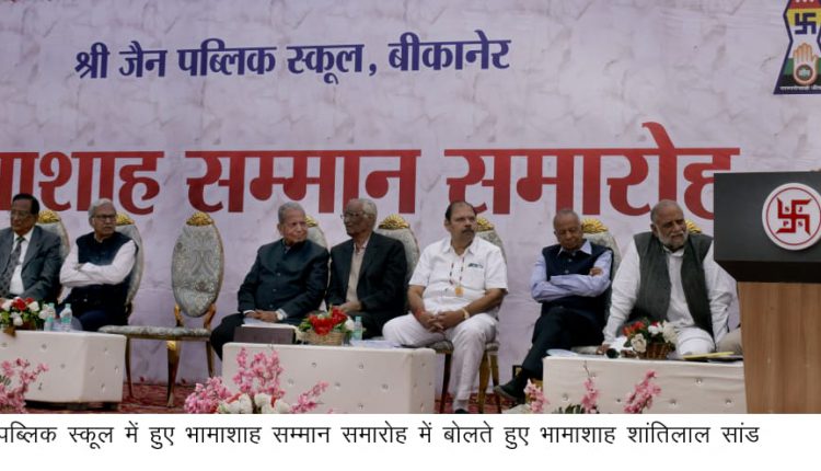 जैन पब्लिक स्कूल में भामाशाहों का सम्मान बीकानेर में अंग्रेजी माध्यम कॉलेज की दरकार।